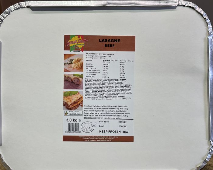 JUST PASTA LASAGNA TRAY 3KG